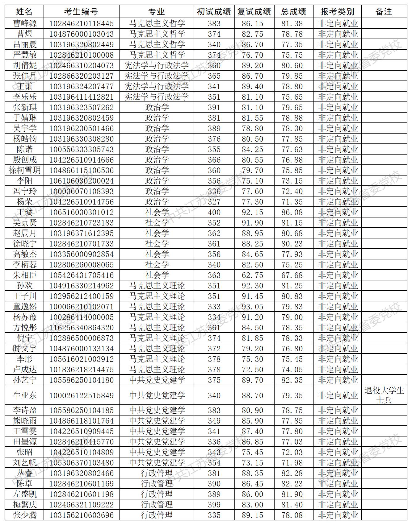 中共江苏省委党校2026年硕士研究生招生调剂考生拟录取名单公示